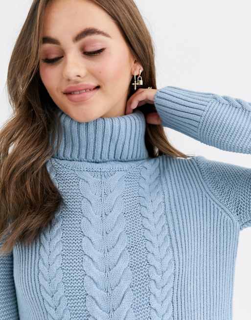 Pimkie Robe pull col roul en maille torsad e Bleu Very well made.
